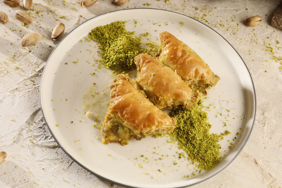 Un / Flour: %25 Su /Water: %2,5 Yumurta / Egg: %1 Antep Fıstığı / Pistachios: %15 Nişasta / Starch: %3,5 Tereyağ / Butter: %18 Şeker / Sugar: %35